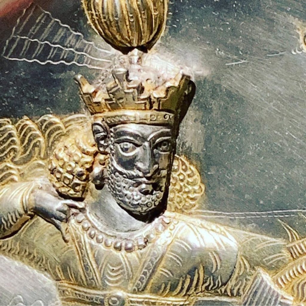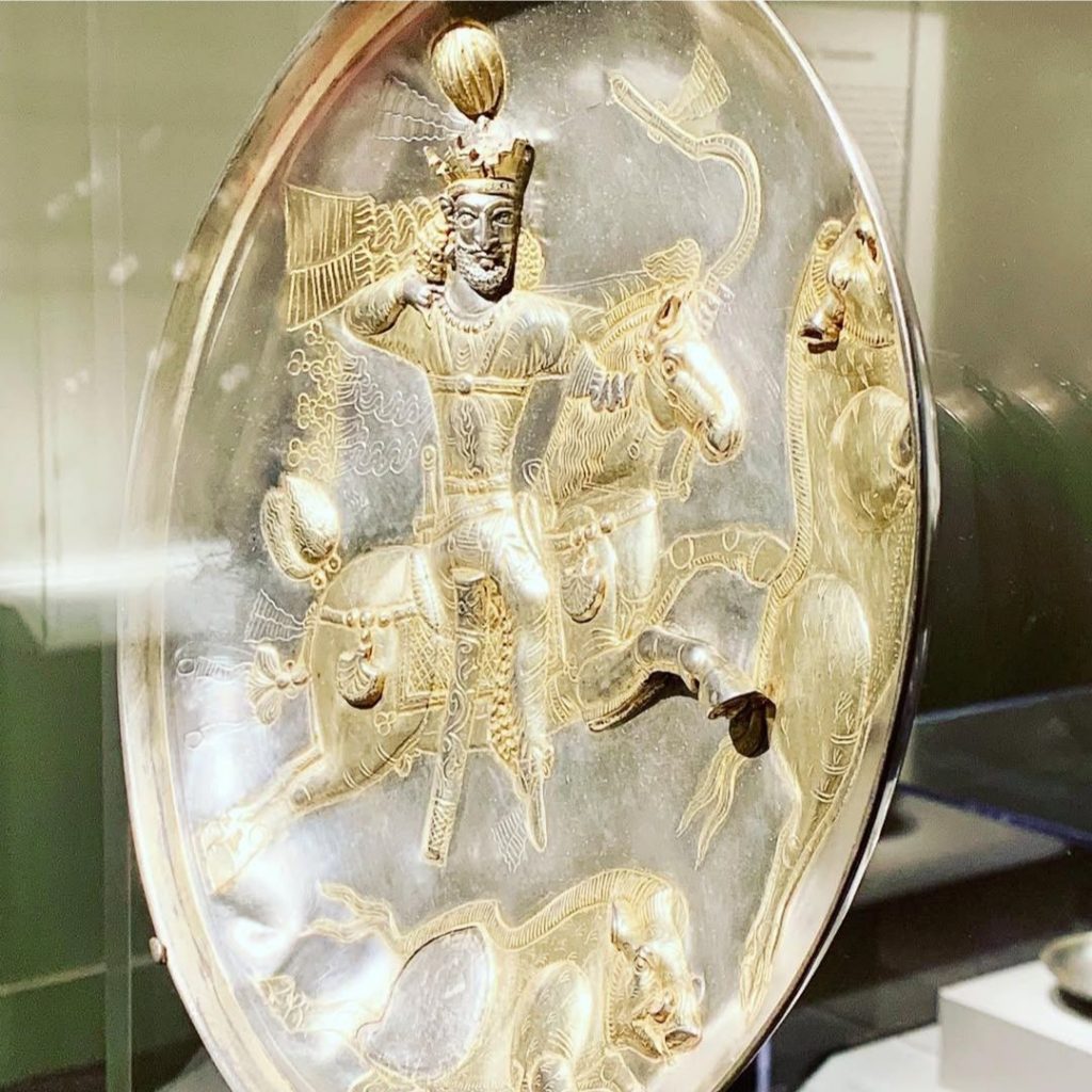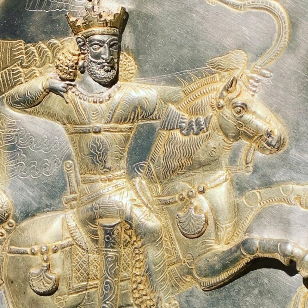 بشقابهای دوره ساسانی بیشک از نقاط اوج هنرِ ایرانند. این بشقابها که معمولا از جنس نقره هستند و گاهی اوقات زر اندود، استفاده تزئینی داشتند و از سوی دربار ساسانی و دربارهای محلی به عنوان