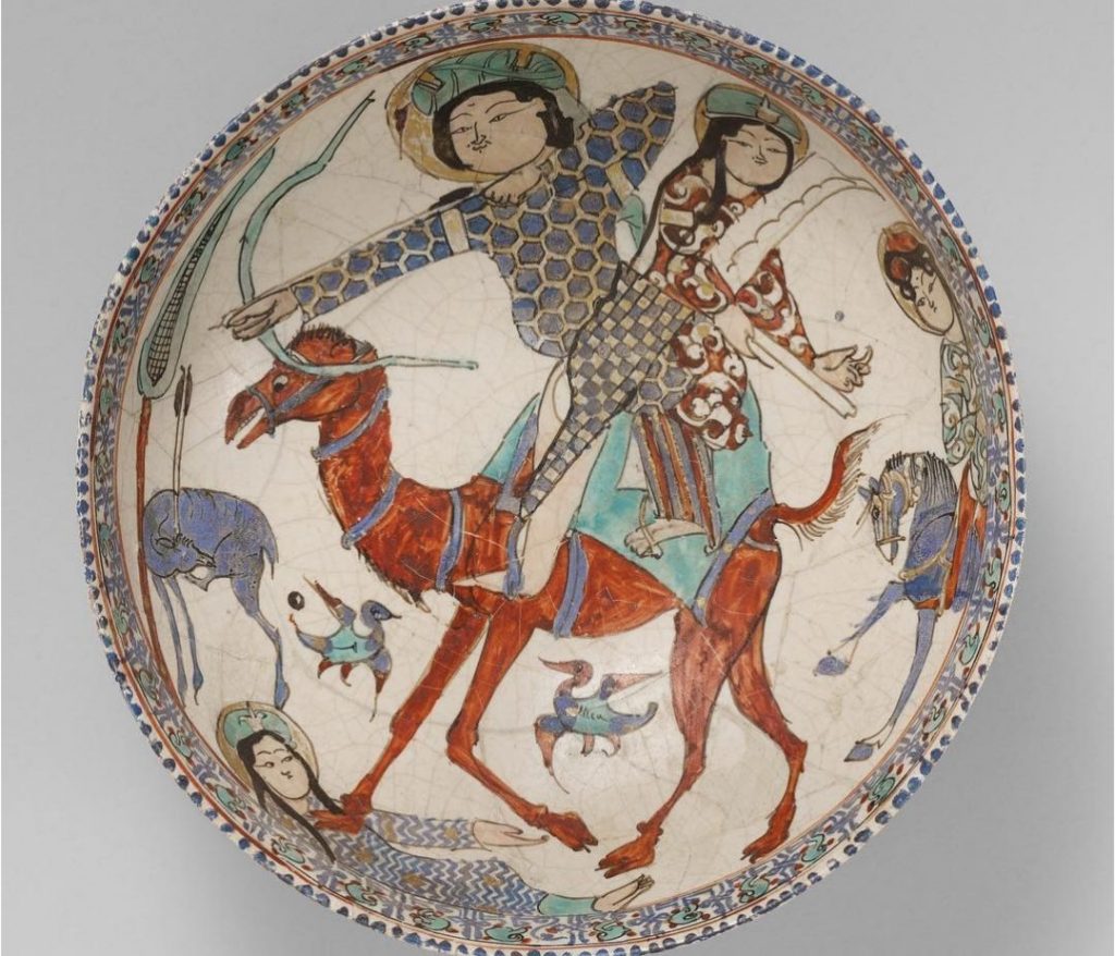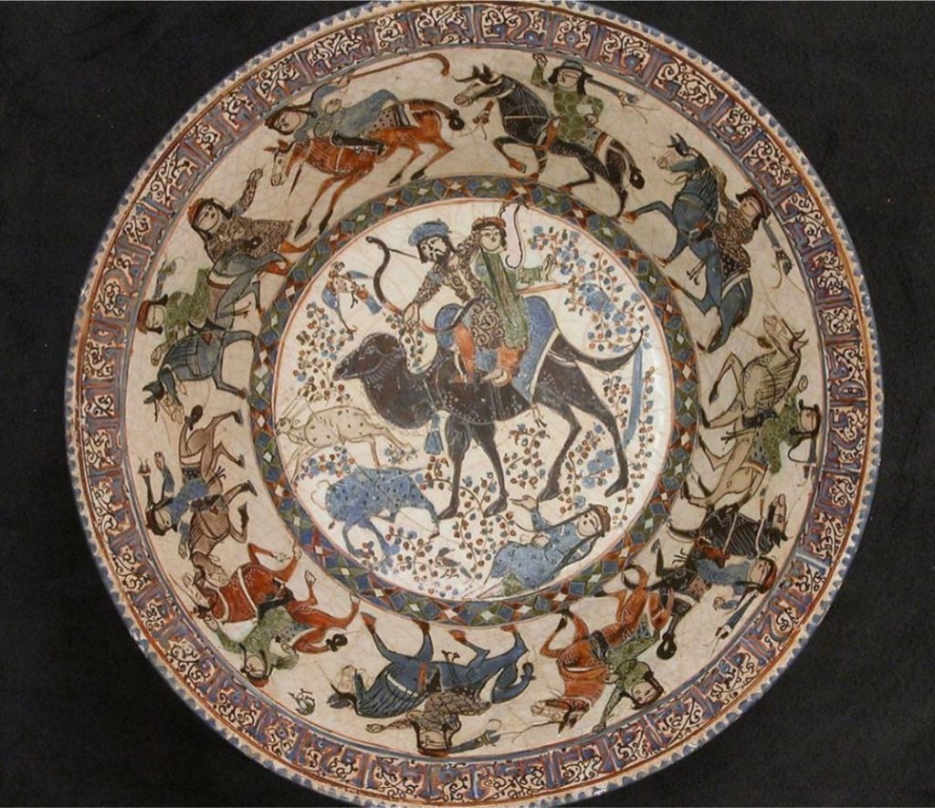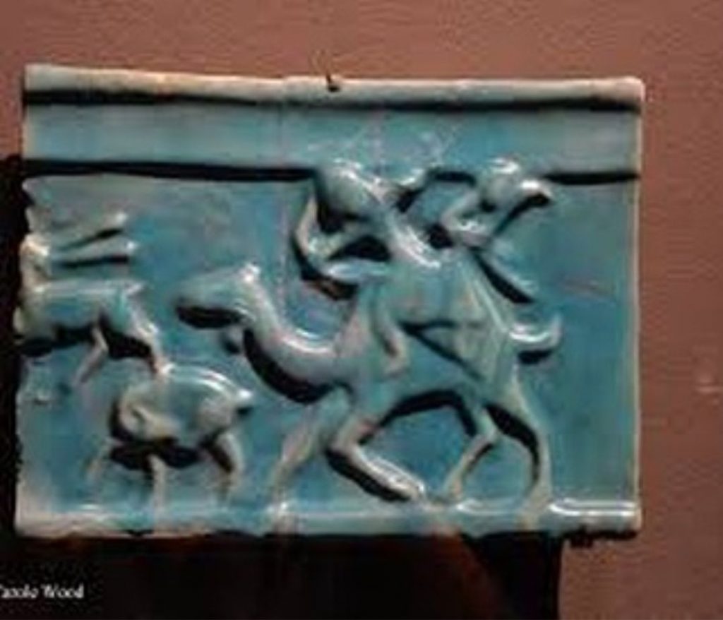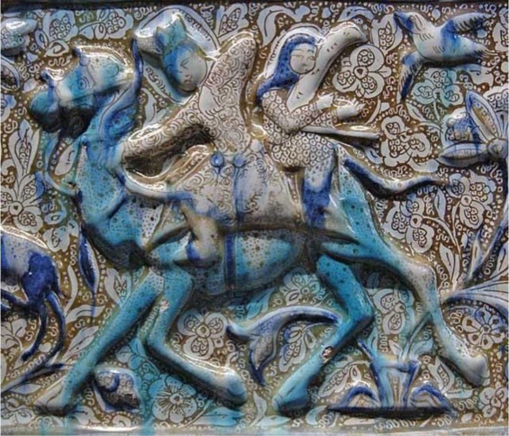 کاشی زرین فام به قرن هفتم هجری تعلق داشت و من در حیرت که این داستان و این نقش، خود هزاران بار در طی هزار سال تکرار شده؛ از گچبریها و بشقابهای ساسانی تا بشقابها، مینیاتورها و کاشیهای ایلخانیِ بعد از مغولان و شاهنامه شاه طهماسب صفوی.