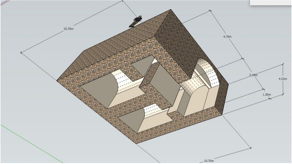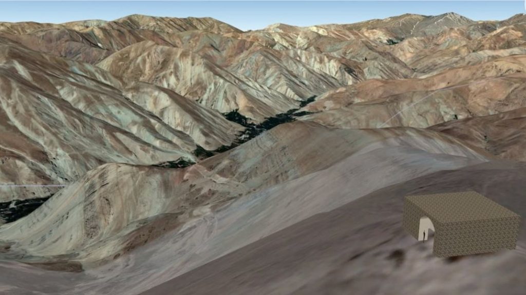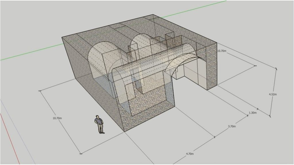 در تعدادی از تصاویر بالا بازسازیِ مجازیِ بنا بر اساس شواهد موجود نشان داده شده است.