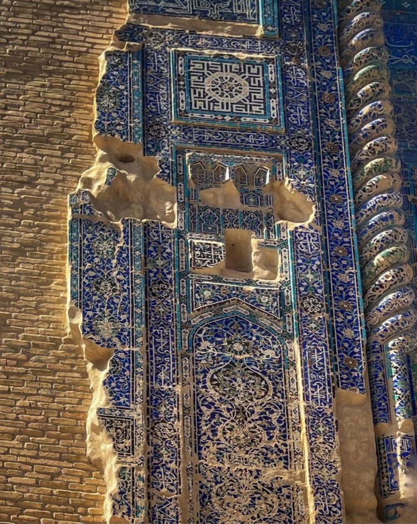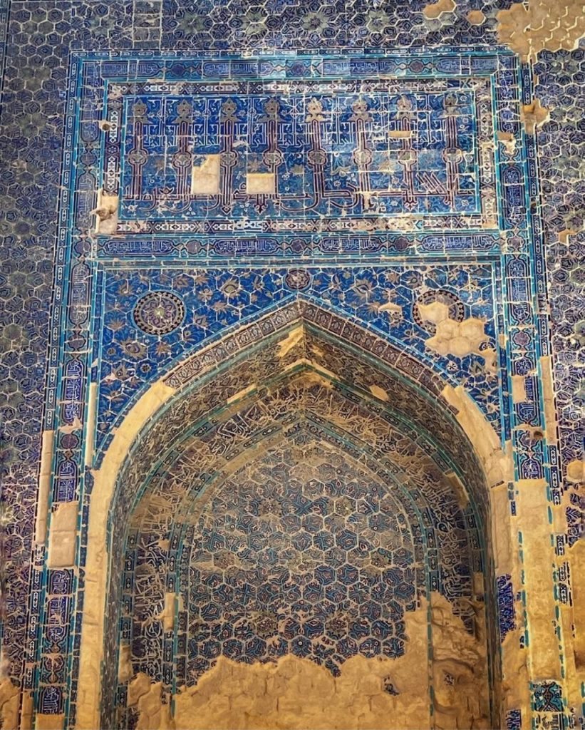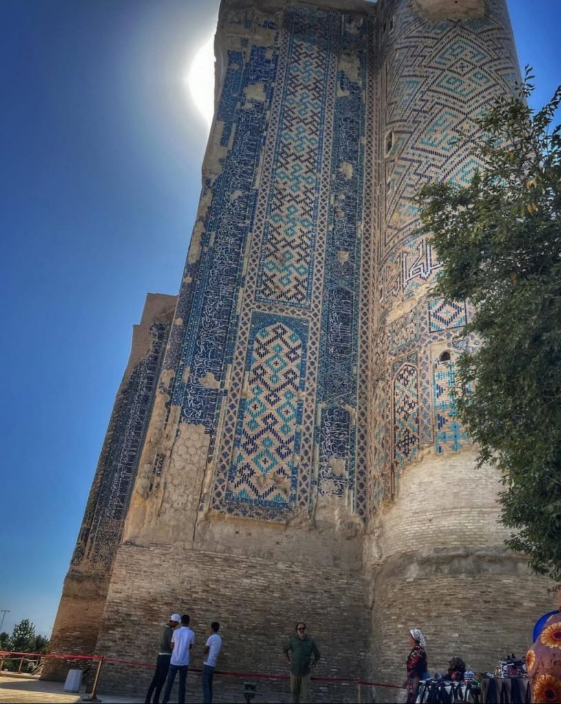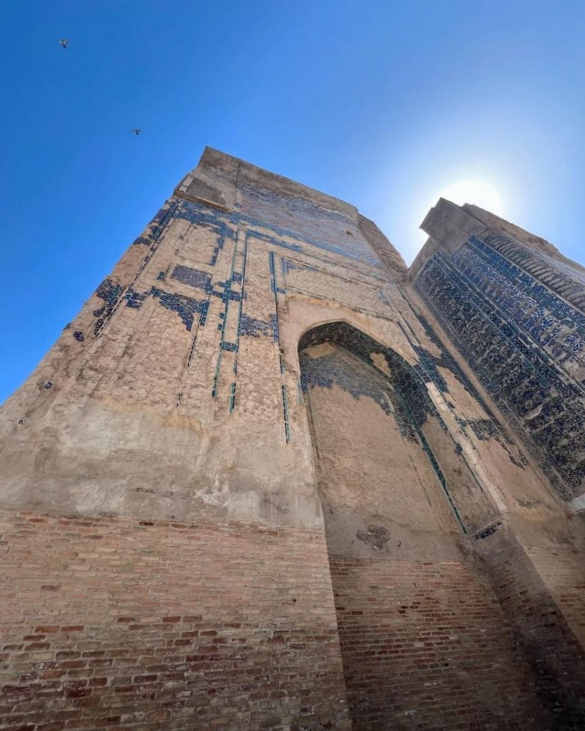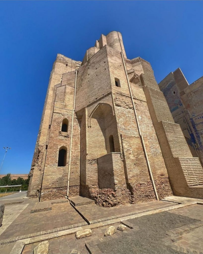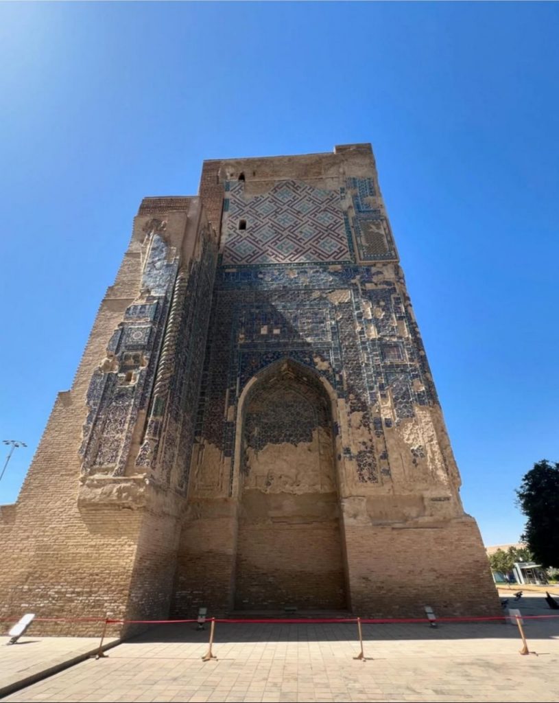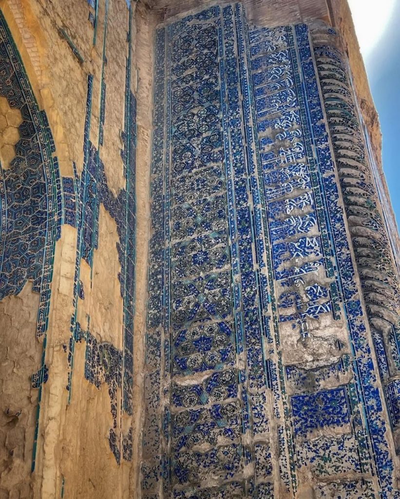 آنچه امروز باقی مانده، همان دروازه عظیم ورودی است که کاشیکاریهای بی نظیرش و کتیبههای مزین به انواع خطوط کوفی و محقق هنوز اوج هنر تیموری را به رخ میکشد. در بخشی کف سازی کاخ نیز باقی مانده که ترکیب بسیار زیبایی از کاشیهای معرق سفید و فیروزهای و لاجوردیست. این کاخ در فهرست میراث جهانی یونسکو به ثبت رسیده است.