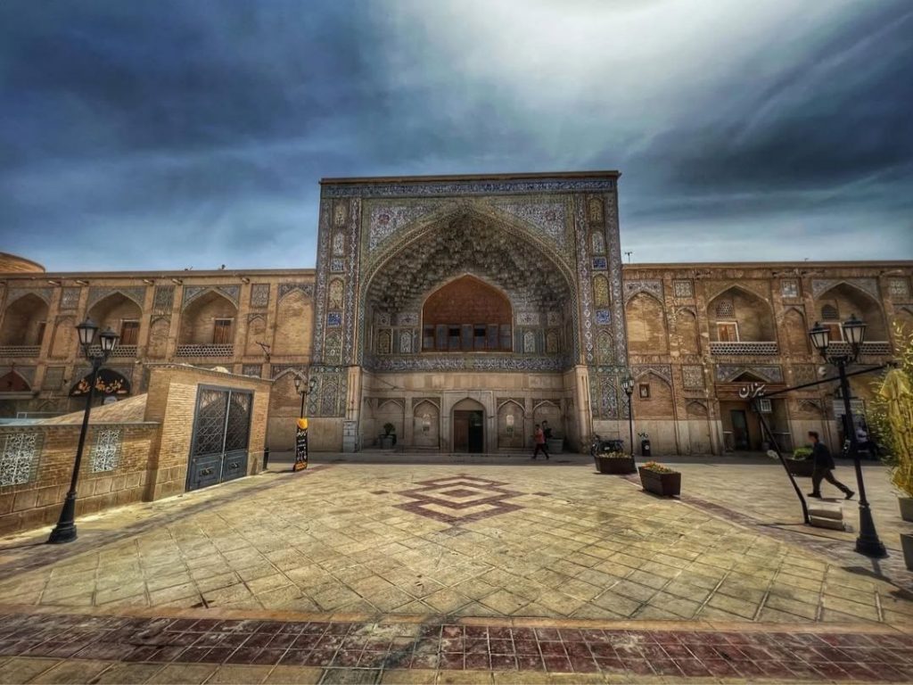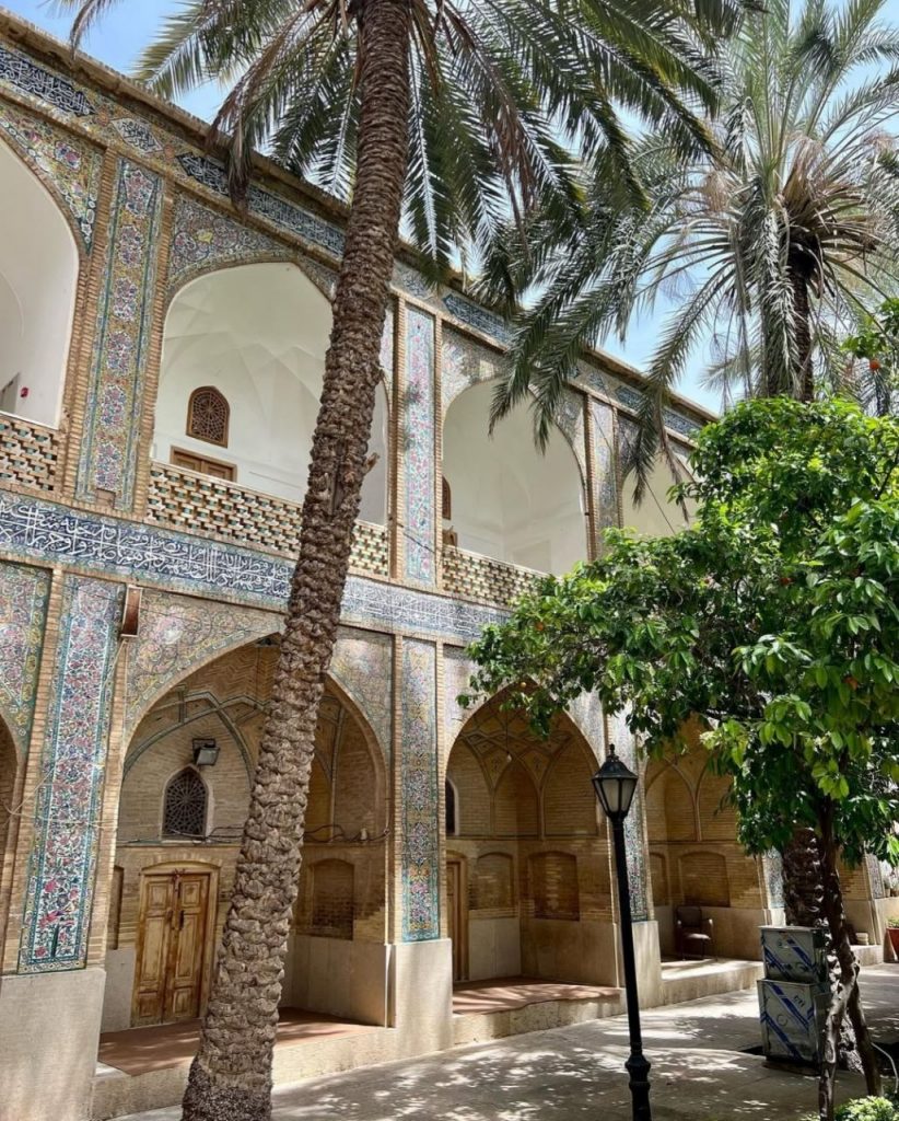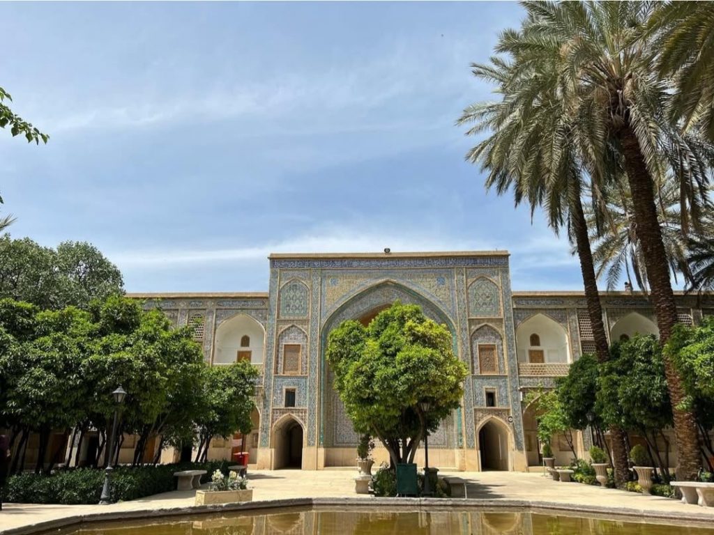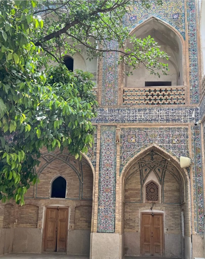 در قدیم این مدرسه با باغهایی در چهار طرف احاطه شده بود که محل تفریح دانشجویان بوده است. در دوران صفوی در این مدرسه علومی چون نجوم، ریاضی، هندسه، فقه و حکمت، گیاه شناسی، جانورشناسی و شیمی تدریس میشده است. ملاصدرا مهم ترین تئوری فلسفی خود (حکمت متعالیه) را در این مدرسه تالیف و تدریس نمود. در حقیقت اللهوردی خان با ساخت این مدرسه شیراز را به کرسی آزاداندیشی آن زمان تبدیل کرد. اما معماری بنا به خودی خود شاهکاریست که نشان از تعادل میان کاربری و زیبایی دارد و محیطی بسیار دلپذیر و آرامشبخش را برای دانشجویان بوجود آورده است. از سطح آیینهگون حوض مرکز حیاط تا سایه و رایحه دلپذیر شکوفههای بهارنارنج درختان آن همه باعث فراغت از غوغای جهان و تمرکز ساکنان میشود. بنا زلزلههای متعدد و تخریبهای بسیاری را از سر گذرانده است. کاشی کاریهای فعلی اکثرا از دوره قاجار هستند. خوشبختانه مدرسه در دست مرمت است که نوید بخشِ حال و روزی بهتر برای این بنای فاخر عهد صفویست.