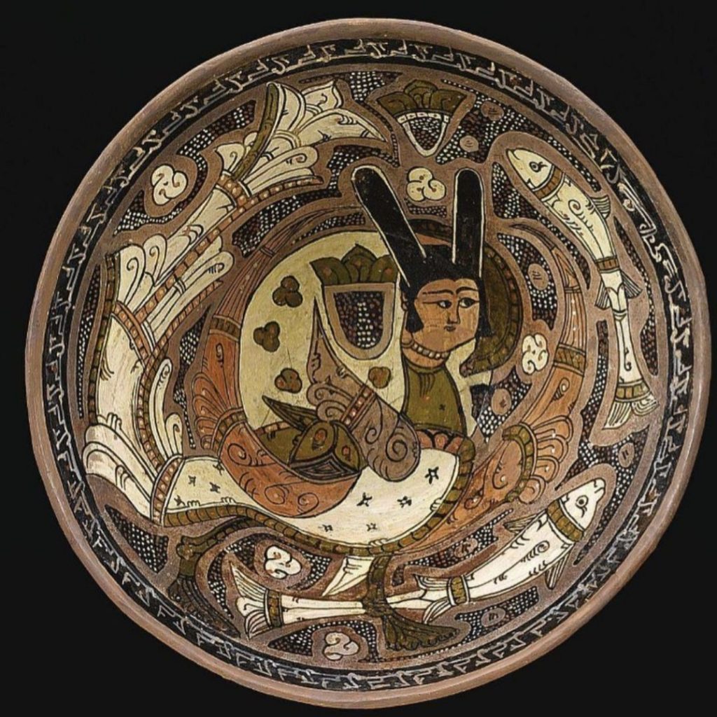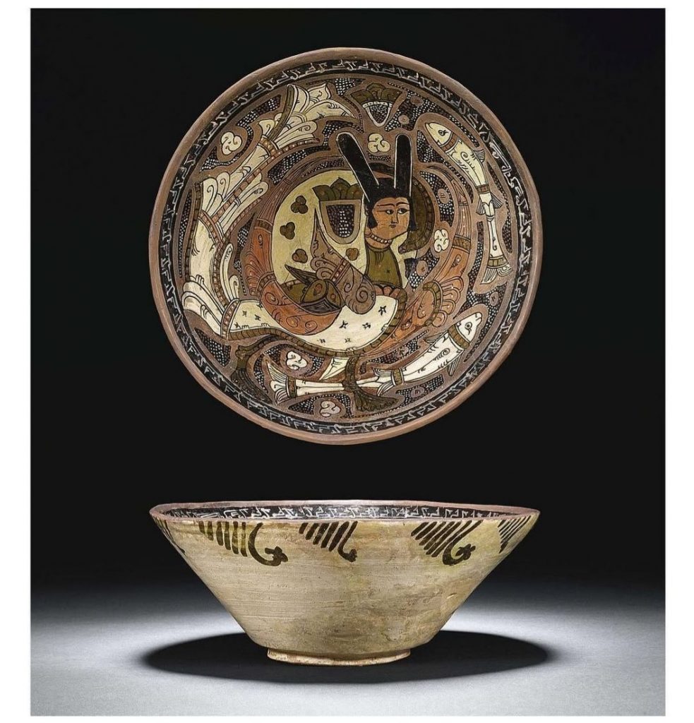 این کاسه لعابدار که حدود یک هزار سال قبل، قرن چهارم هجری، در قلمرو سامانیان و احتمالا در نیشابور ساخته شده سرنخهایی از سبک نقاشی ایرانی در آن دوران به ما میدهد. با توجه به اینکه از آن زمان هیچ نقاشیای بر روی کاغذ باقی نمانده، ظروف منقوش نشان میدهد اصلوب چهره نگاری شرقی که از دوره سلجوقی به بعد کاملا رواج یافته، هنوز در این دوره در مراحل ابتدایی خود بوده است.