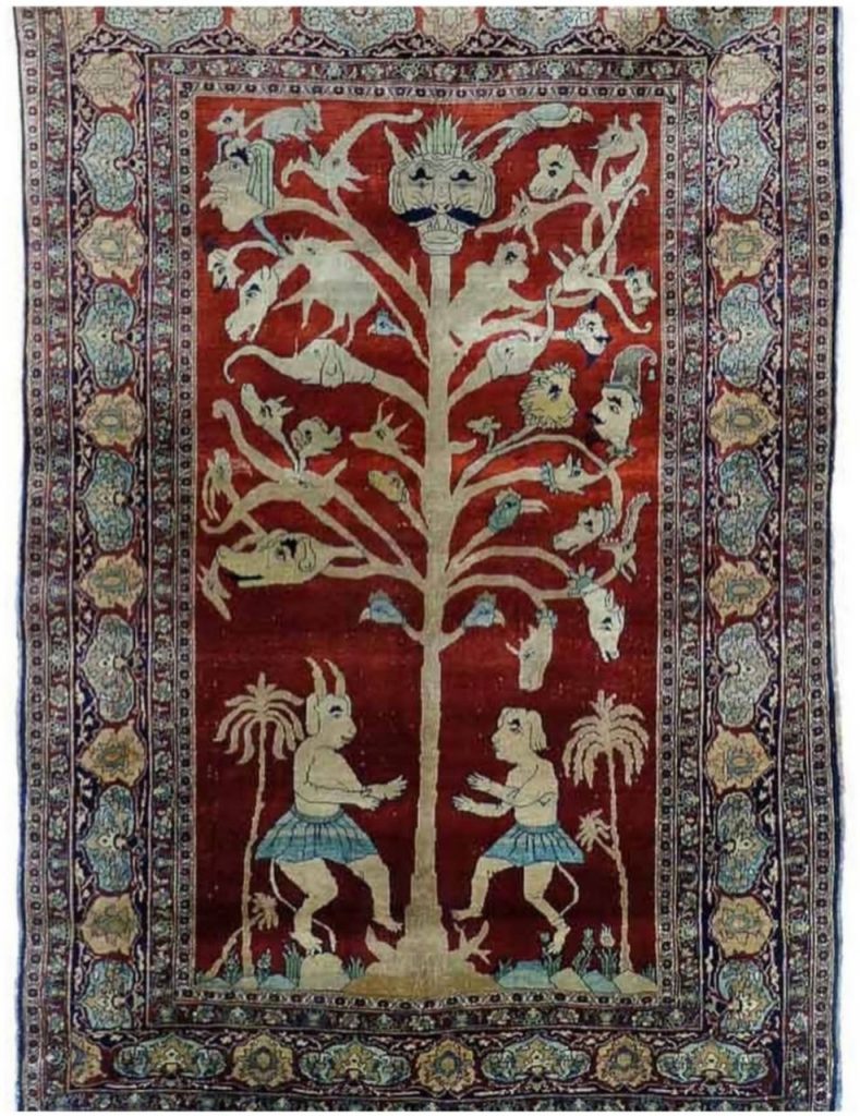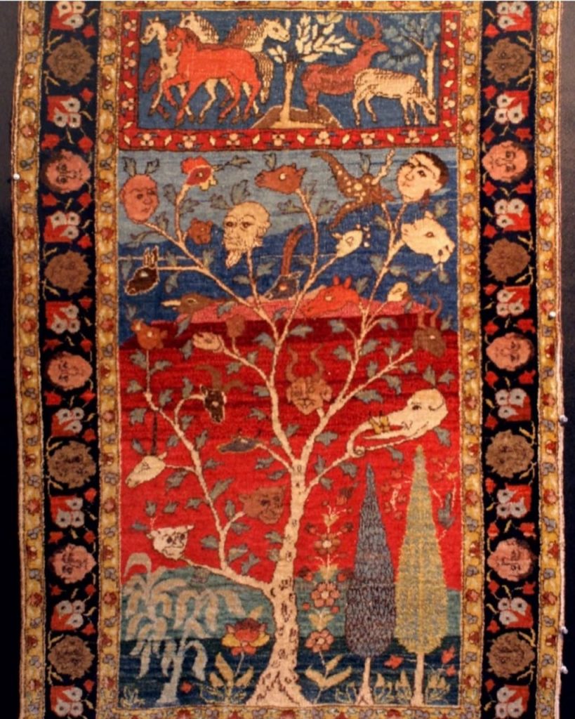 سالها پیش که برای نخستین بار واژه «واق واق» برای توصیف نقوش یک فرش به گوشم خورد، بسیار تعجب کردم و هر چه فکر کردم نتوانستم ربطش را به آن فرش زیبا بیابم. بعدها متوجه شدم که در افسانههای ایران زمین به درختی گفته میشود که میوههایش به شکل انسانها و حیواناتند، هر صبح بهار میکند و هر شب خزان، و درختیست سخنگو که در اقصای شرق در جزیرهها میروید. در شاهنامه، اسکندر که به پایان دنیا سفر میکند درختی سخنگو میبیند. در گرشاسب نامه نیز شرح مفصلی از آن داده شده. این افسانه به صورت نقشمایه در هنر ایران قرنها به کار رفته و امروزه کماکان در نقوش فرش ایرانی به کار گرفته میشود. فرشهایی به زیر پا گسترده که زیباییشان برای ایرانیان عادی و پیش پا افتاده مینمایند اما هر کدام در دلشان نقشمایههایی دارند که از دل افسانهها و رسوم هزارهها بیرون آمده است.