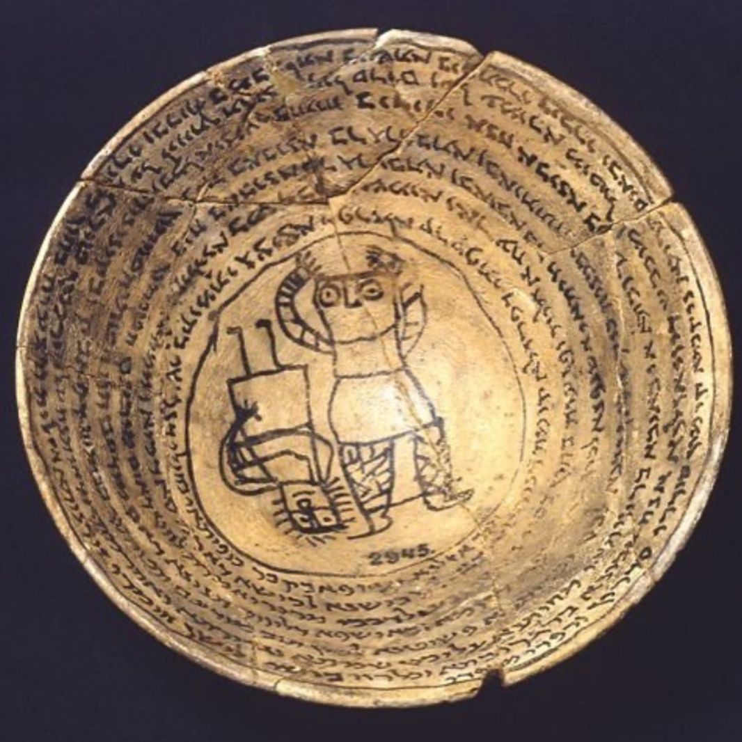 این کاسه سفالین، به گروهی از ظروف تعلق دارند که در دوره ساسانی به عنوان طلسم به کار میرفتند. معمولا به زبان آرامی بودند و شامل فهرست بلند بالایی از شیاطین و دیوان و ارواح خبیثه میشدند که قراربود صاحب ظرف از شرشان در امان باشد. گاهی برای محکم کاری و قدرت بیشتر، تصاویر دیوان و شیاطین هم بر آنها نقاشی میشد و بعضی از ظروف هم حاوی اسامی صاحبانشان هستند.به دلیل تکثر ادیان در ایران ساسانی، این ظروف مورد استفاده، زرتشتیان، مسیحیان، یهودیان، مندائیان و دیگر ادیان بودند و گاهی در یک ظرف به شیاطین ادیان مختلف اشاره میشده.…