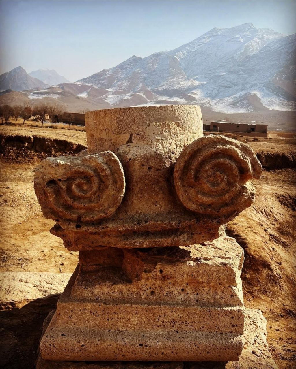 با اینکه سلسله اشکانی طولانی ترین دوره حکومت را در تاریخ ایران داشته، آثار باقیمانده از دوره اشکانیان بسیار معدودند. در کنار روستای خورهه (در اوستا خورهه به معنای تولد خورشید است) بنایی از دوره اشکانیان باقیمانده که سالها به عنوان معبد و آتشکده معروف بود اما در آخرین کاوشها مشخص شد، کاخی شخصی است. نکته جالب اینکه ناصرالدین شاه قاجار، دو بار به فاصله ۳۵ سال دستور کاوش این محوطه را داده بود. سر ستونها کاملا از اسلوب یونانی پیروی میکنند اما ابعاد و تناسبات ستونها و شکلِ کف ستونها کاملا ایرانیست. ارتفاع دو ستون باقیمانده به هشت متر…